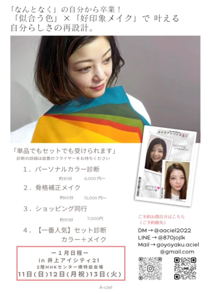 4. 「パーソナルカラー診断」1月の開催日
