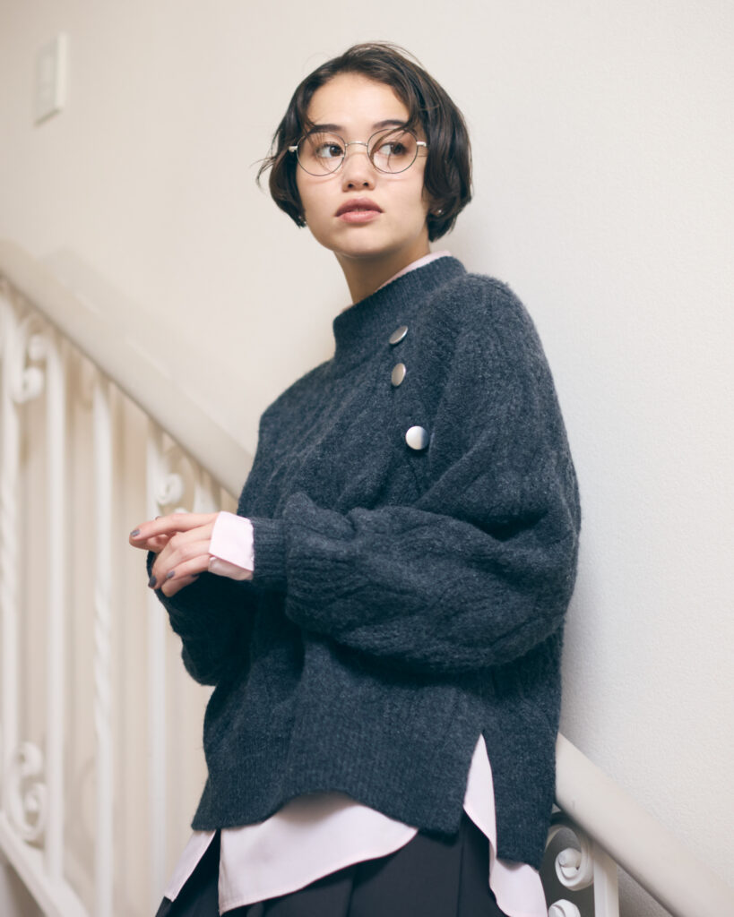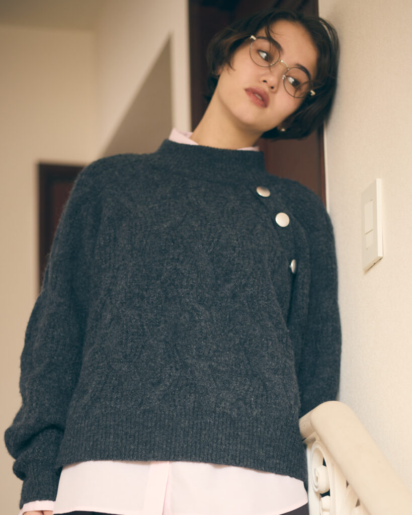 暖かみのあるケーブル柄ニットです。