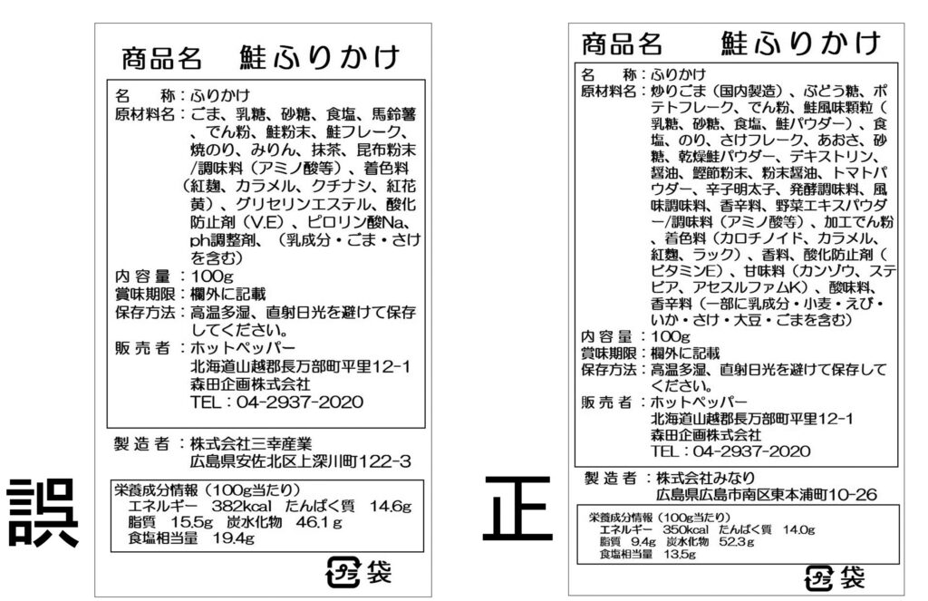 『ホットペッパー 鮭ふりかけ』 の食品ラベルに誤りがありました。