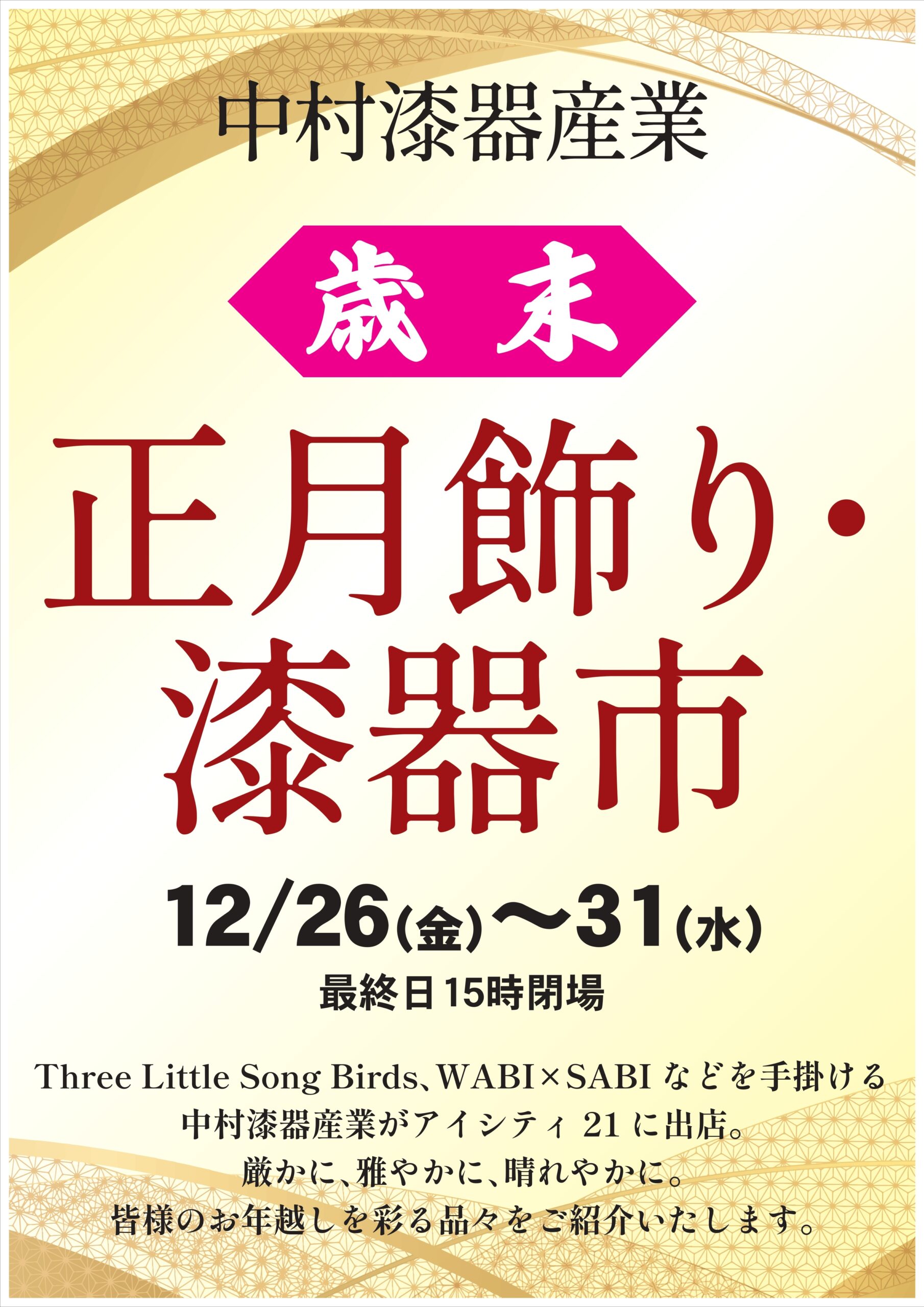 12/26(金)~12/31(水)中村漆器産業「歳末 正月飾り・漆器市」開催!